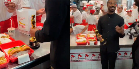 O ator foi flagrado em uma unidade do In-N-Out Burger em Hollywood poucas horas depois da premiação