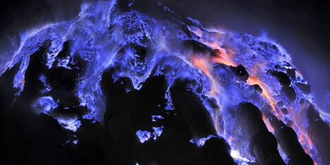 O efeito azul intenso é real, mas nasce da combustão de gases vulcânicos; cientistas ainda ficam intrigados com o fenômeno e sua beleza imponente
