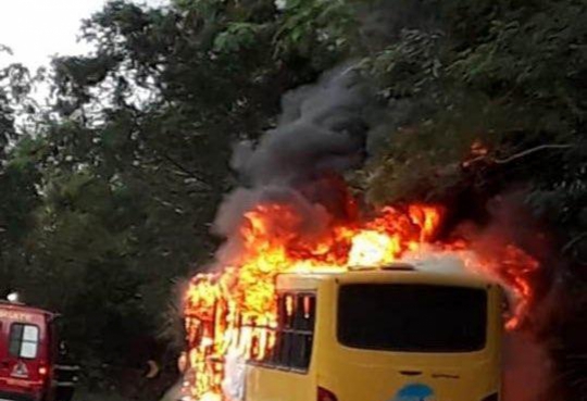Usuários conseguiram sair antes que as chamas atingissem todo o veículo