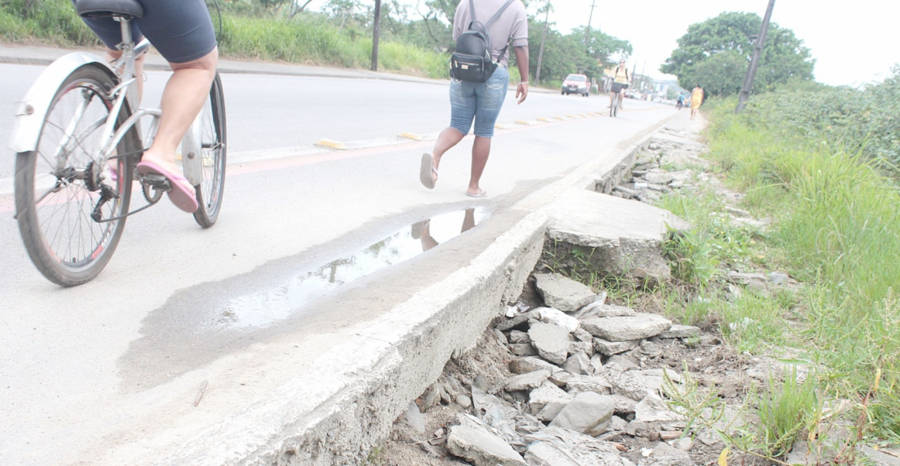 Enormes buracos na calçada, valas e falta de iluminação, além do mau cheiro, preocupam população do bairro.