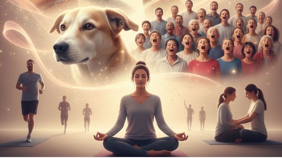 Encontrar o toque certo em massagem suave ou com pressão moderada nas costas, cabeça ou pés. Olhar nos olhos do seu cão. Usar bons aromas e movimentar-se. Correr, praticar artes marciais, ioga.