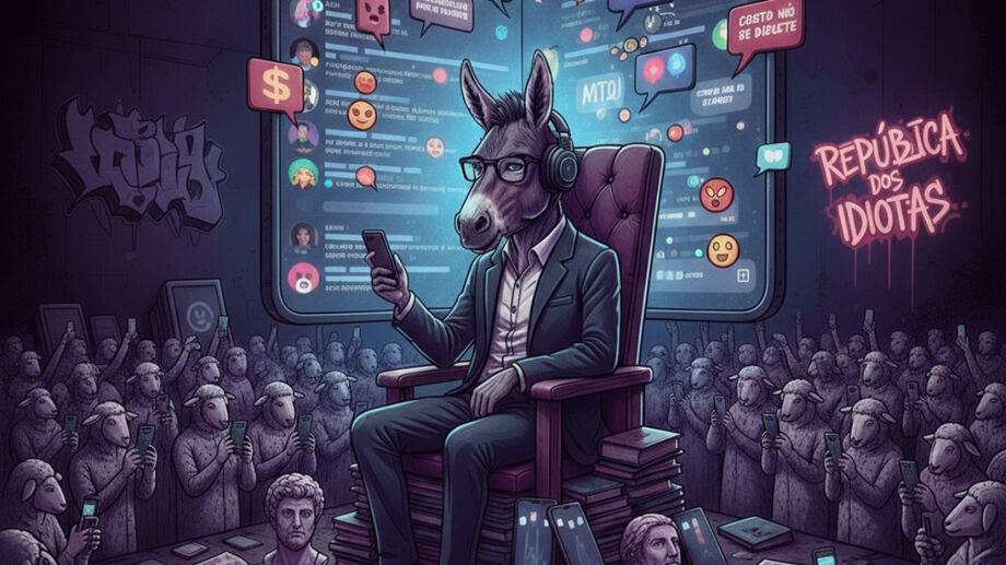 Hoje, as redes sociais, esse mega comércio de almas virtuais e autoestima programada, estão repletas de idiotas. Podcasts, instagram, facebook, tik tok, não importa qual o produto do momento, estão abarrotados de idiotas. Partem sempre de seus mundinhos medíocres e interesseiros acreditando ser um universo em expansão. Ditadores de opinião alheia, acham que refletem sobre o que só copiam. E assim seguem sendo racistas, misóginos, fascistas, supremacistas etc. E, é claro, com o apoio incondicional do sistema do qual fazem parte produto e ideologia.