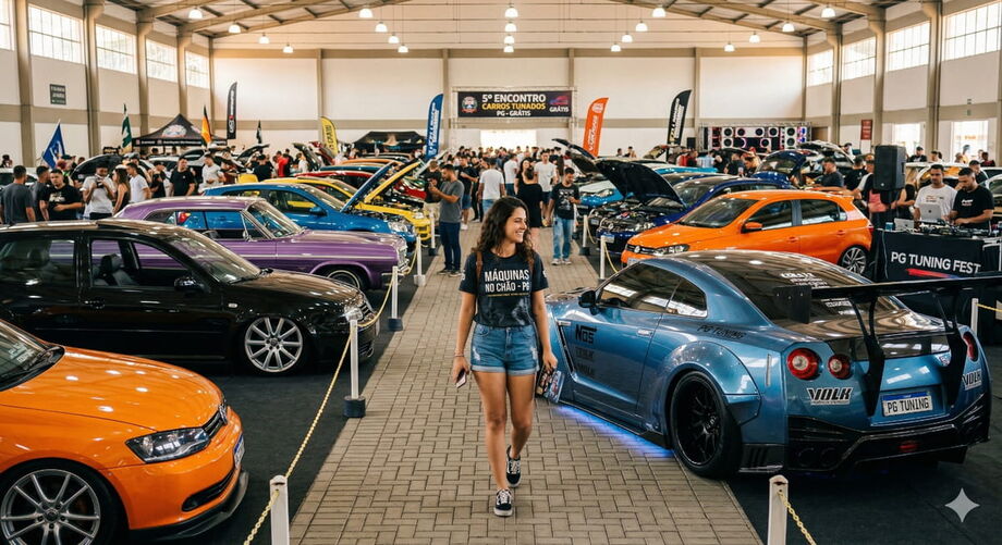 Os visitantes poderão conferir de perto carros modificados com projetos que vão desde alterações estéticas e pintura personalizada até mudanças mais complexas, como suspensão rebaixada e melhorias de desempenho.