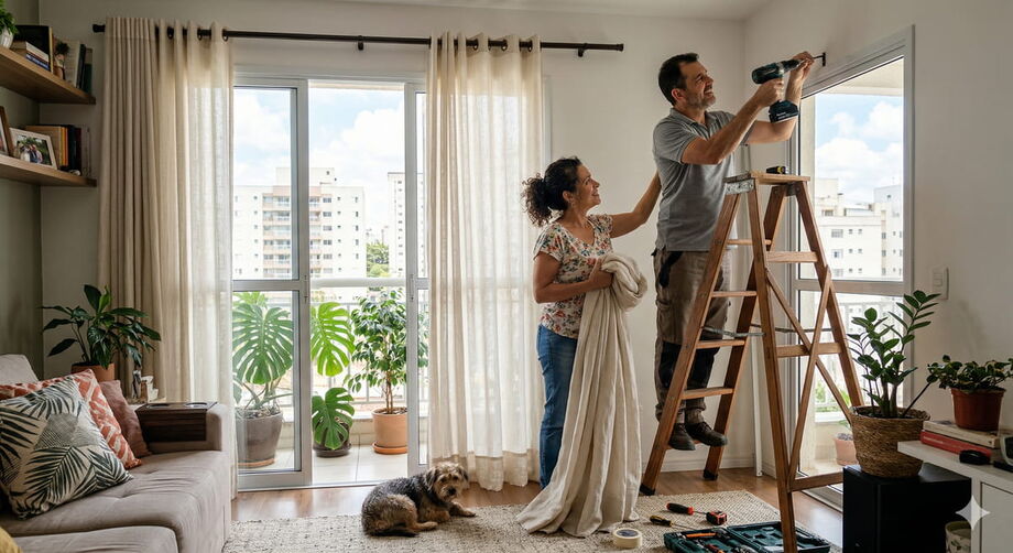 Quartos, por exemplo, exigem maior bloqueio de luminosidade, enquanto salas podem se beneficiar de tecidos mais leves e translúcidos. Já espaços com home office pedem soluções que evitem reflexos e garantam conforto visual.