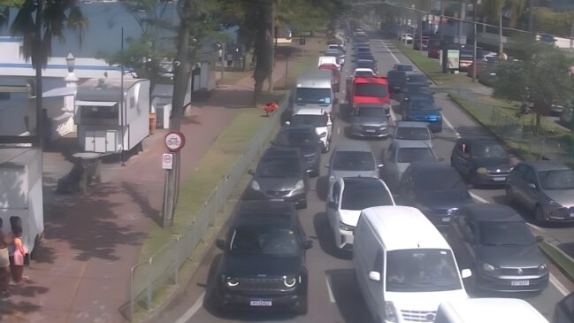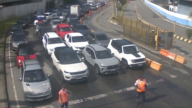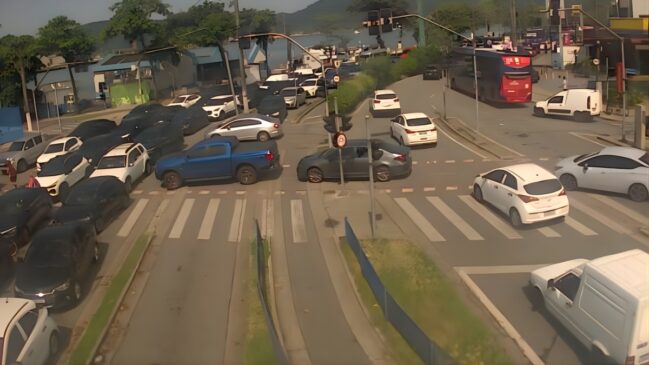 No sentido Santos, os motoristas enfrentam 100 minutos de fila para atravessar rumo ao Guarujá. Já no sentido oposto (Guarujá/Santos), o tempo de espera é menor, estimado em 20 minutos.
