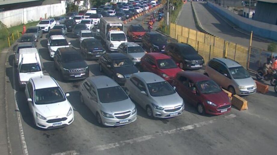 Fila de espera na travessia de Santos/Guarujá está com um tempo de espera de quase 1 hora / Semil/Reprodução