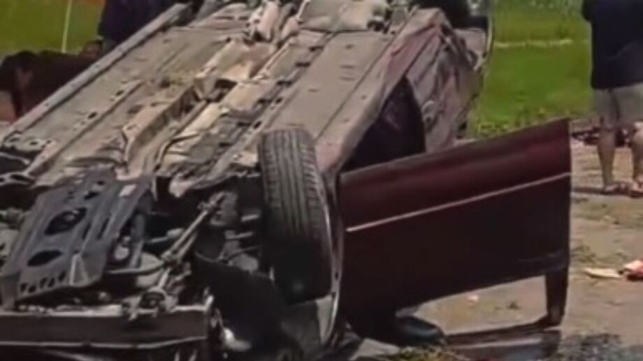 Um carro capotou próximo à Ponte dos Barreiros, em São Vicente, no início da tarde desta quarta-feira (28), na Av Angelina Pretti da Silva, sentido Quarentenário.