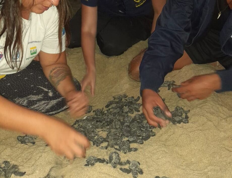 A Fundação Projeto Tamar e o Instituto Argonauta iniciaram buscas para localizar o ninho, que acabou sendo identificado apenas no período noturno. A tartaruga responsável pela postura não foi encontrada — comportamento considerado natural, já que as fêmeas depositam os ovos e deixam o local.
