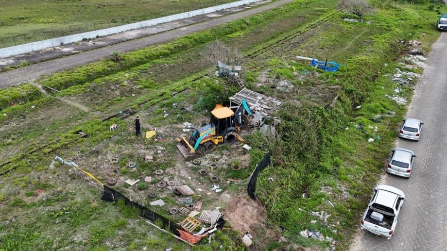 No Balneário Plataforma, uma construção às margens da linha férrea foi considerada irregular e precisou ser demolida. A família que ocupava o local foi encaminhada ao CRAS Agenor de Campos.