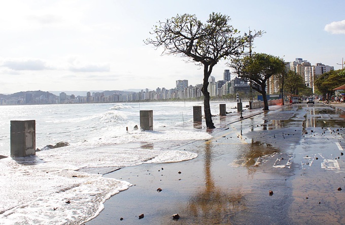 Segundo o Professor da Escola Politécnica da USP, Paolo Alfredini, em recente estudo, desenvolvido a pedido do Ministério Público, verifica-se uma “elevação do nível médio do mar em torno a 36 cm, de 1990 até 2050, e de 100 cm, de 1990 até 2100. Estima-se que de 1950 até os dias atuais a elevação tenha sido de 23 centímetros”. Com isso, explica o professor, a energia da onda unitária da década de 1950, que era descarregada em lâmina d’água de 1,25 metros, passou a ter no mesmo ponto uma lâmina d’água de 1,48 metros, correspondendo a um aumento de energia da onda que arrebenta ali de 40,18%.