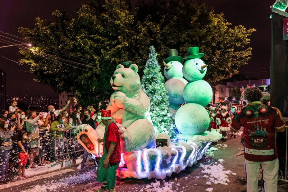 A partir das 19h, haverá uma parada com cinco carros iluminados com a presença do Papai Noel e esculturas, acompanhada da banda tocando as músicas. A concentração será atrás do Paço Municipal e ela percorrerá, por aproximadamente 40 minutos, a Rua General Câmara até a outra extremidade da Praça Mauá.