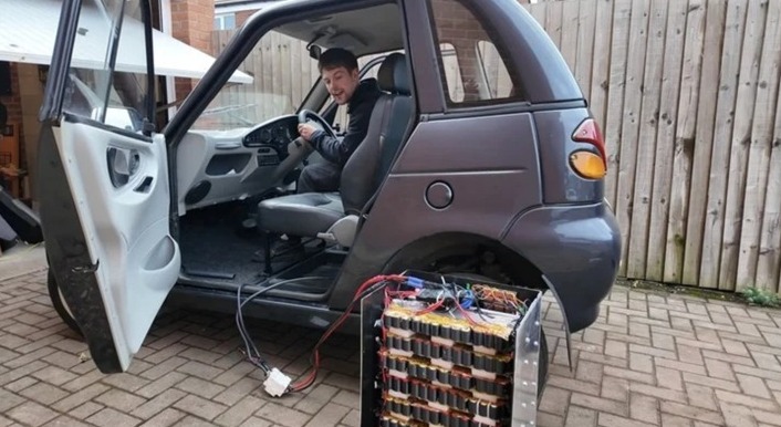 A bateria foi instalada em um G-Wiz, um microcarro elétrico conhecido por sua estrutura simples. A escolha do modelo não foi por acaso: ao contrário de veículos modernos, ele não exige sistemas eletrônicos complexos, o que facilita adaptações experimentais.