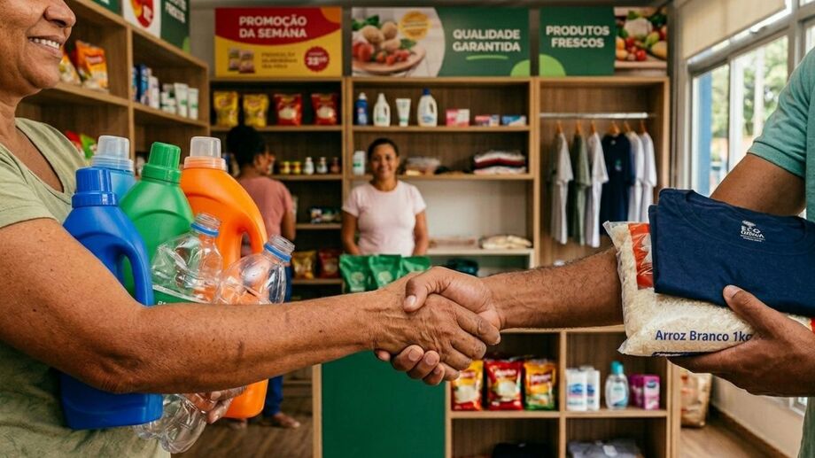 Iniciativa do programa Reciclar Vale Mais usa "Eco Carteira" e moeda social para fortalecer economia circular na cidade / Reprodução/Imagem feita por IA