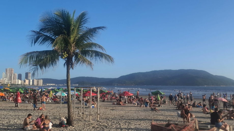 O final da tarde do feriado da Consciência Negra registrou grande movimento nas praias da Baixada Santista, com famílias e turistas aproveitando a maré de sol e calor. As cidades de Santos, Guarujá, Praia Grande e Bertioga registraram alta ocupação nesta quinta-feira (20) nos calçadões, areias e quiosques, à medida que moradores locais e visitantes celebravam a folga.