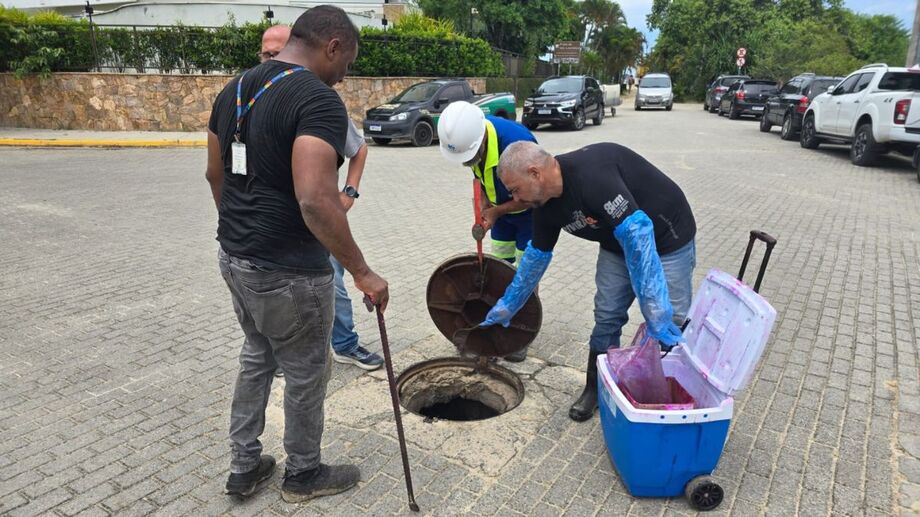 Também foram feitos testes em cerca de 15 poços de visita da rede coletora de esgotos, além de pontos de drenagem de águas pluviais, como parte das medidas de prevenção e monitoramento ambiental.