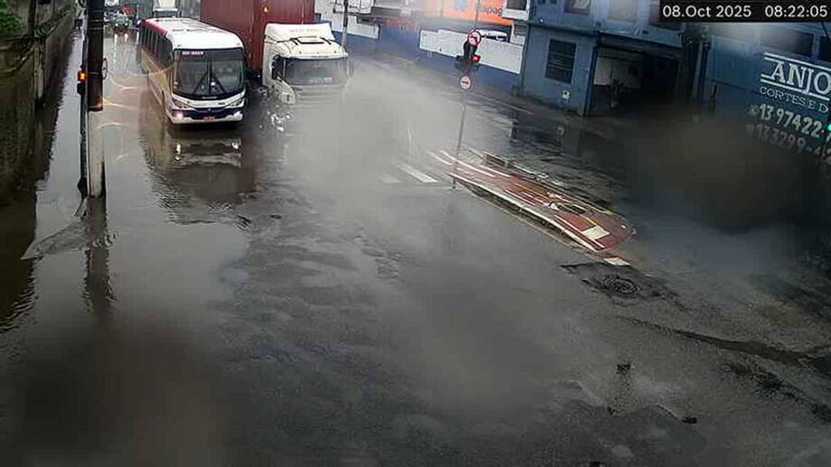 As chuvas da madrugada desta quarta-feira (8) deixaram alguns pontos alagados em Santos. Na manhã de hoje, foi registrado esse cenário na Avenida Nossa Senhora de Fátima, nos dois sentidos, e nas ruas do bairro Jardim Castelo.