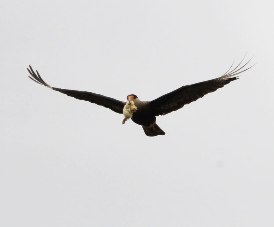 Um clique raro flagrou um gavião-carcará (Caracara plancus) levando um patinho 'para passear' em um voo mortal. Muito provavelmente, foi a primeira e última vez que o patinho sobrevoou os céus de Suzano, no interior de São Paulo, cidade onde a foto foi registrada.