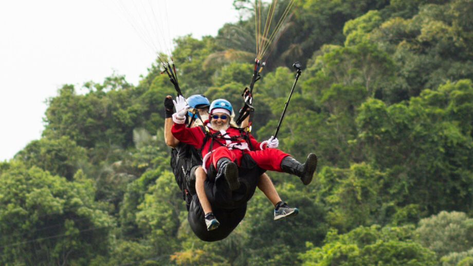 As atividades começam às 13h, com concentração no Teleférico de São Vicente. Às 14h, o bom velhinho sobe o Morro do Voturuá, ponto de onde decola, uma hora depois, para o tradicional voo de parapente que sobrevoa a primeira cidade do Brasil.