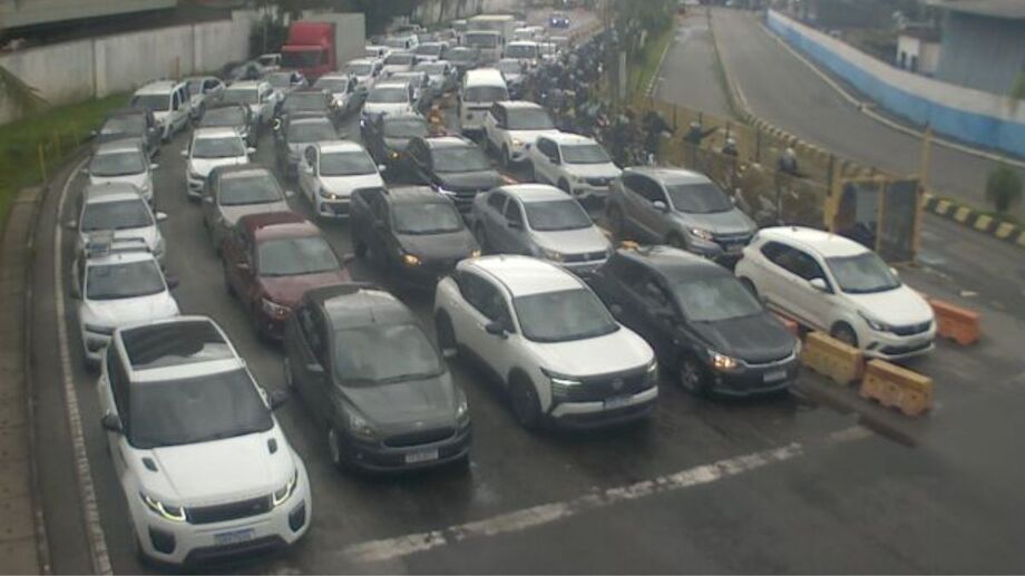 Os condutores que aguardam no sentido Santos–Guarujá esperam 25 minutos. Já no sentido oposto, o tempo de espera é de 35 minutos.
