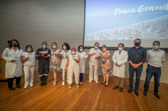 O evento contou com a presença da prefeita de Praia Grande, Raquel Chini, entre outras autoridades. “Agradeço todos os profissionais da Secretaria de Saúde Pública, desde aqueles que estão na portaria, na recepção, no administrativo até aqueles que estão lidando diretamente com os pacientes, como os médicos, enfermeiros e auxiliares. Todos têm sido fundamentais nessa luta que dura quase um ano”, disse.