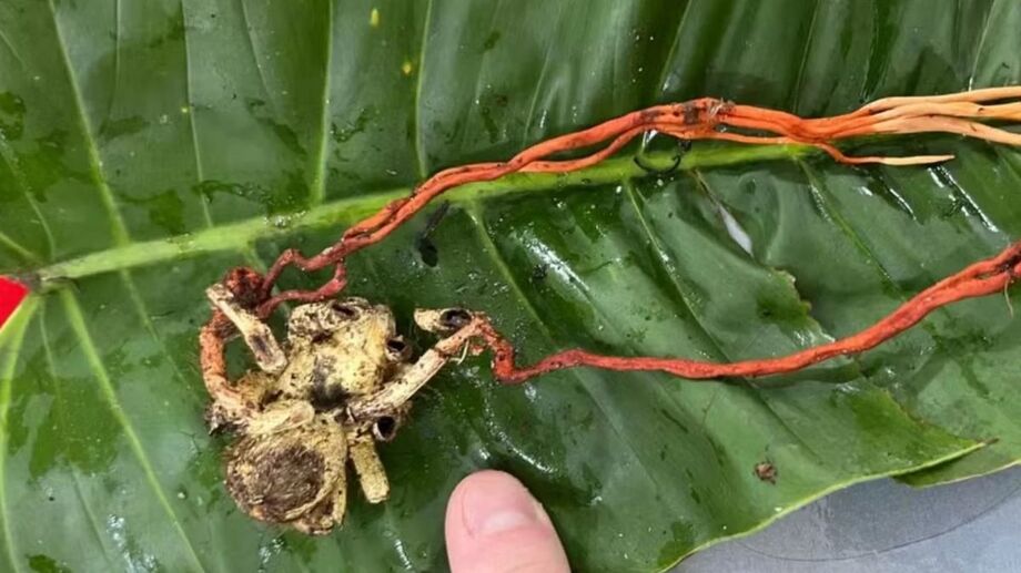 Um vídeo que circula na internet mostra uma cena rara envolvendo dois organismos de espécies distintas na maior floresta do mundo: um “fungo zumbi” parasitando uma tarântula gigante da Amazônia.