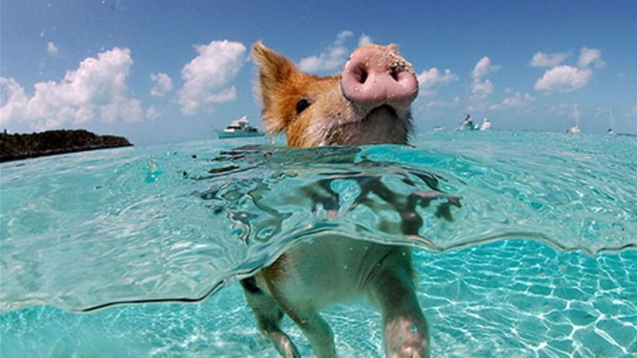 Conhecida como “Pig Beach” (Praia dos Porcos), a ilha Big Major Cay é o lar de pelo menos 20 suínos que se tornaram uma atração turística internacional graças a um hábito peculiar: nadar ao lado de visitantes.