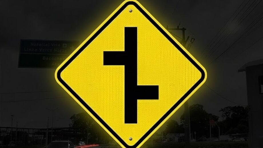 Diante dessa sinalização, o motorista pode encontrar mais de um ponto de acesso ou cruzamento na sequência, posicionados em lados opostos da pista, o que exige atenção redobrada.