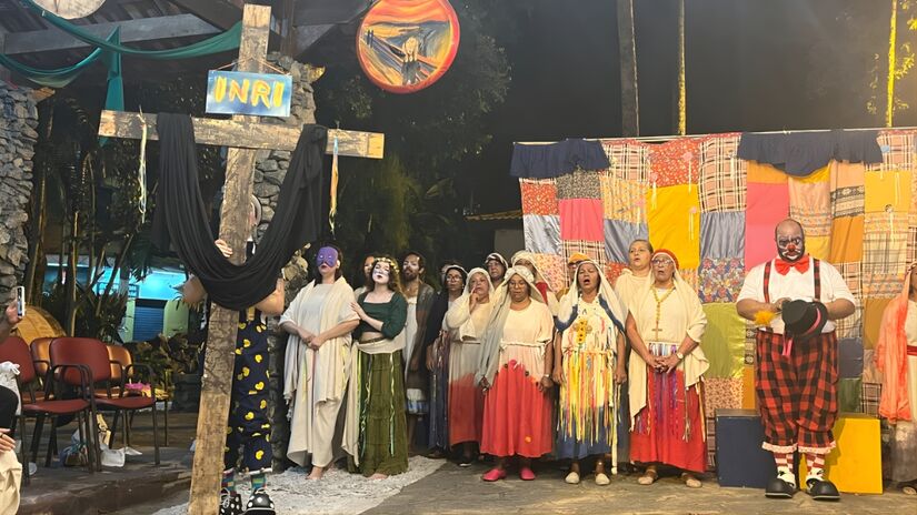 A montagem apresenta a trajetória de Jesus, do nascimento à crucificação, com uma estética inovadora de trupe circense e elementos da cultura popular brasileira. O espetáculo une teatro e música, contando com um elenco de cerca de 50 pessoas.