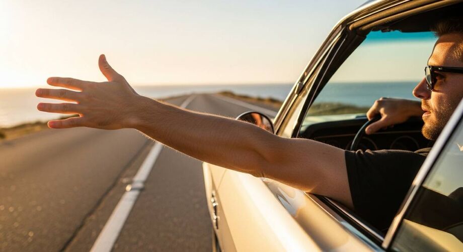 Em meio a esse grande universo, um deles chama muita atenção: o motorista com o braço para fora do veículo, com a mão aberta em posição baixa.