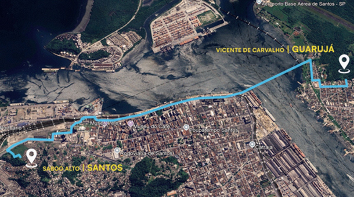 Atualmente, já existe uma estrutura semelhante em operação, ligando a Ponta da Praia (Santos) à Vila Lígya (Guarujá), que também é capaz de transportar até 500 litros de água por segundo.