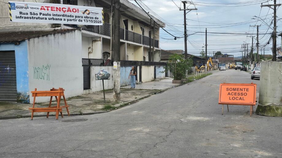 Uma das principais vias de acesso ao futuro Aeroporto Civil Metropolitano de Guarujá está interditada. A Rua São Paulo, na altura da Avenida Presidente Vargas, foi bloqueada nesta segunda-feira (13) para o avanço da segunda fase das obras de infraestrutura do entorno do terminal aéreo.