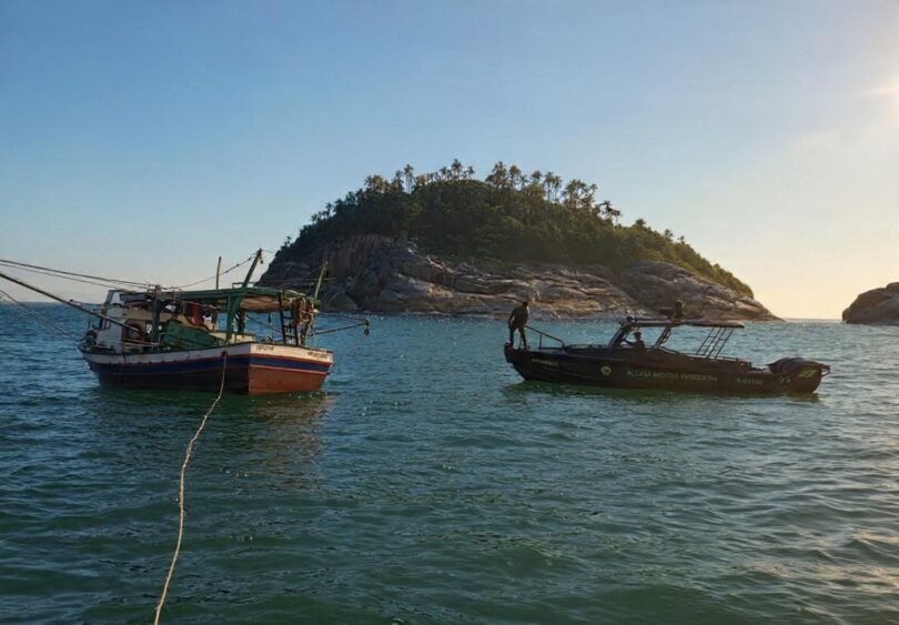 Em uma segunda ação, na mesma região, outra embarcação foi flagrada com equipamentos preparados para pesca de arrasto — prática proibida durante o defeso.