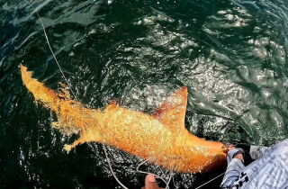 . O animal, de cerca de dois metros, foi capturado durante uma pescaria esportiva próxima ao Parque Nacional Tortuguero e posteriormente devolvido ao mar