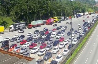 Os motoristas que seguem para São Paulo também estão enfrentando lentidão em alguns trechos, segundo a Ecovias