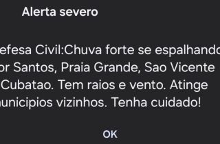 Aviso chegou aos aparelhos celulares da população na tarde desta terça-feira