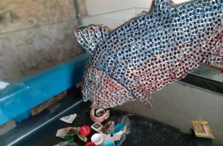 Peças feitas de materiais recicláveis e objetos retirados dos mangues e rios de Itanhaém podem ser vistas até 15 de janeiro
