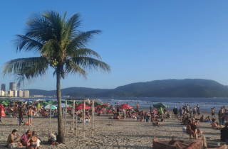 O sol forte e o clima agradável de lazer atraiu multidão nas praias de Santos, Guarujá, Praia Grande e Bertioga nesta quinta-feira (20)
