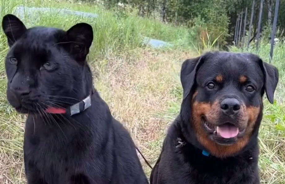 Durante a recuperação, um encontro improvável deu novo rumo à trajetória de Luna. Venza, uma cadela da raça rottweiler que já vivia com a cuidadora, se aproximou da pequena pantera. A apresentação foi cautelosa, mas a conexão foi imediata.