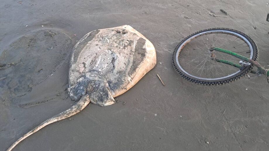 Uma raia de grande porte foi encontrada morta na praia de Peruíbe no último fim de semana. O animal já estava em estado avançado de decomposição no momento em que foi localizado.