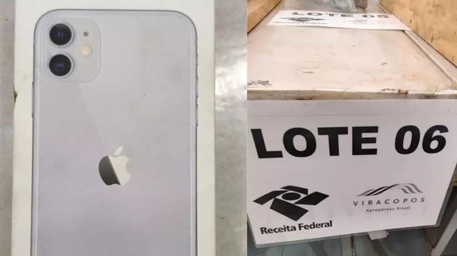 O lote 6 oferece um iPhone 11 com lance mínimo de R$ 300, enquanto o lote 4 disponibiliza um iPhone 13 Pro a partir de R$ 900 / Divulgação/Receita Federal