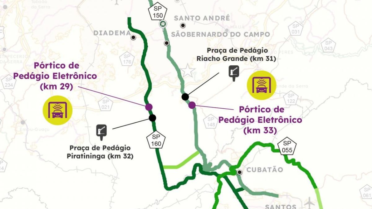 Na Rodovia dos Imigrantes, um segundo pórtico será instalado até o final do mês no km 29, substituindo a atual praça do km 32. O início efetivo da cobrança eletrônica está previsto apenas para julho, após testes e autorização da Agência de Transporte do Estado de São Paulo (Artesp).