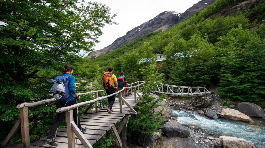 Na Patagônia chilena, tem circuitos na Torres del Paine, cruzando lagos de azul quase irreal e o Campo de Gelo Patagônico Sul.
