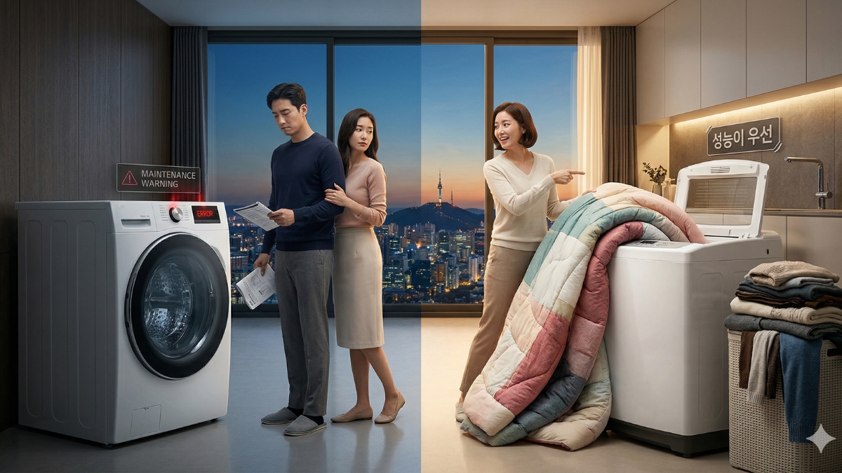 A tendência atual nos bairros mais ricos da Coreia do Sul não é uma invenção futurista, mas sim a "revanche" de um clássico: a clássica lavadora de carregamento superior (eixo vertical). E os motivos dessa mudança estão fazendo muita gente repensar suas compras de luxo.
