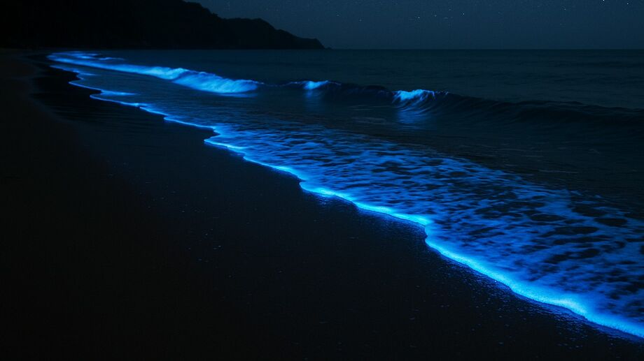 Parece cena de filme, mas é real: há lugares no Brasil onde o mar brilha sozinho quando a noite cai. O fenômeno, conhecido como bioluminescência marinha, transforma as ondas em faixas de luz azulada que dançam sobre a areia, criando um espetáculo natural tão raro quanto hipnotizante.