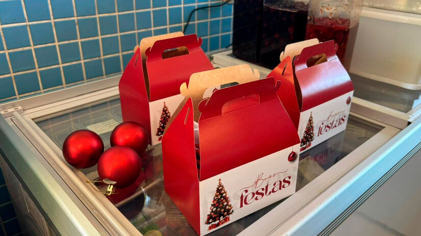 Na compra da bebida, o público também leva para casa um par de meias natalinas, entregue em uma caixa personalizada.