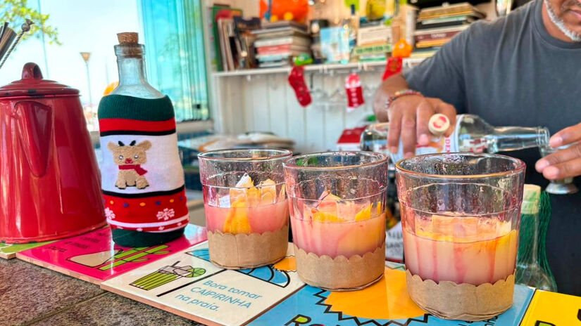 Localizado na orla de Santos, em frente ao Canal 2, o estabelecimento já se destaca por ser o primeiro quiosque do mundo dedicado exclusivamente à caipirinha, com sabores diferentes e propostas inusitadas. Para o período natalino, a ousadia se mantém, e a bebida é preparada a partir de uma infusão de panetone por 72 horas.