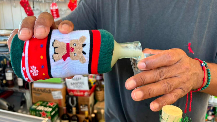 Mistura inusitada une tradição natalina e o drink mais famoso do Brasil em um processo artesanal que exige paciência e técnica na Baixada Santista.