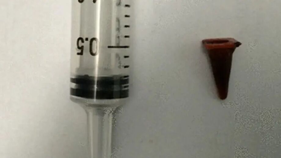 No entanto, uma broncoscopia (exame que permite a visualização e análise das vias respiratórias) mostrou que a massa não passava de um cone de trânsito de um centímetro.
