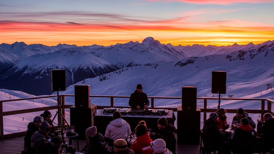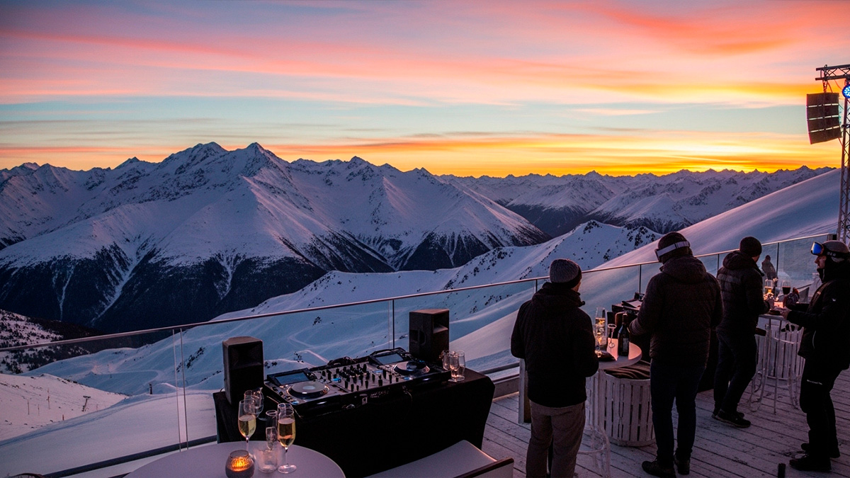 O grande diferencial do Infinitum 3K está na combinação de elementos que criam uma atmosfera quase cinematográfica. Imagem gerada por IA do GoogleMais do que uma festa, o evento se vende como um espetáculo natural. E não é exagero. A 3.000 metros acima do nível do mar, o pôr do sol ganha tons ainda mais intensos, refletindo na neve e criando um visual difícil de reproduzir em qualquer outro lugar.