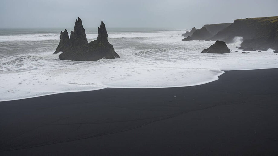 Reynisfjara destaca-se pela cor da areia, resultado de erupções vulcânicas e da fragmentação de rochas de basalto que a deixa mais escura, quase negra. As colunas que se erguem ao lado da praia e as pilhas rochosas conhecidas como Reynisdrangar compõem um cenário cinematográfico, que já serviu de pano de fundo para produções como Game of Thrones.